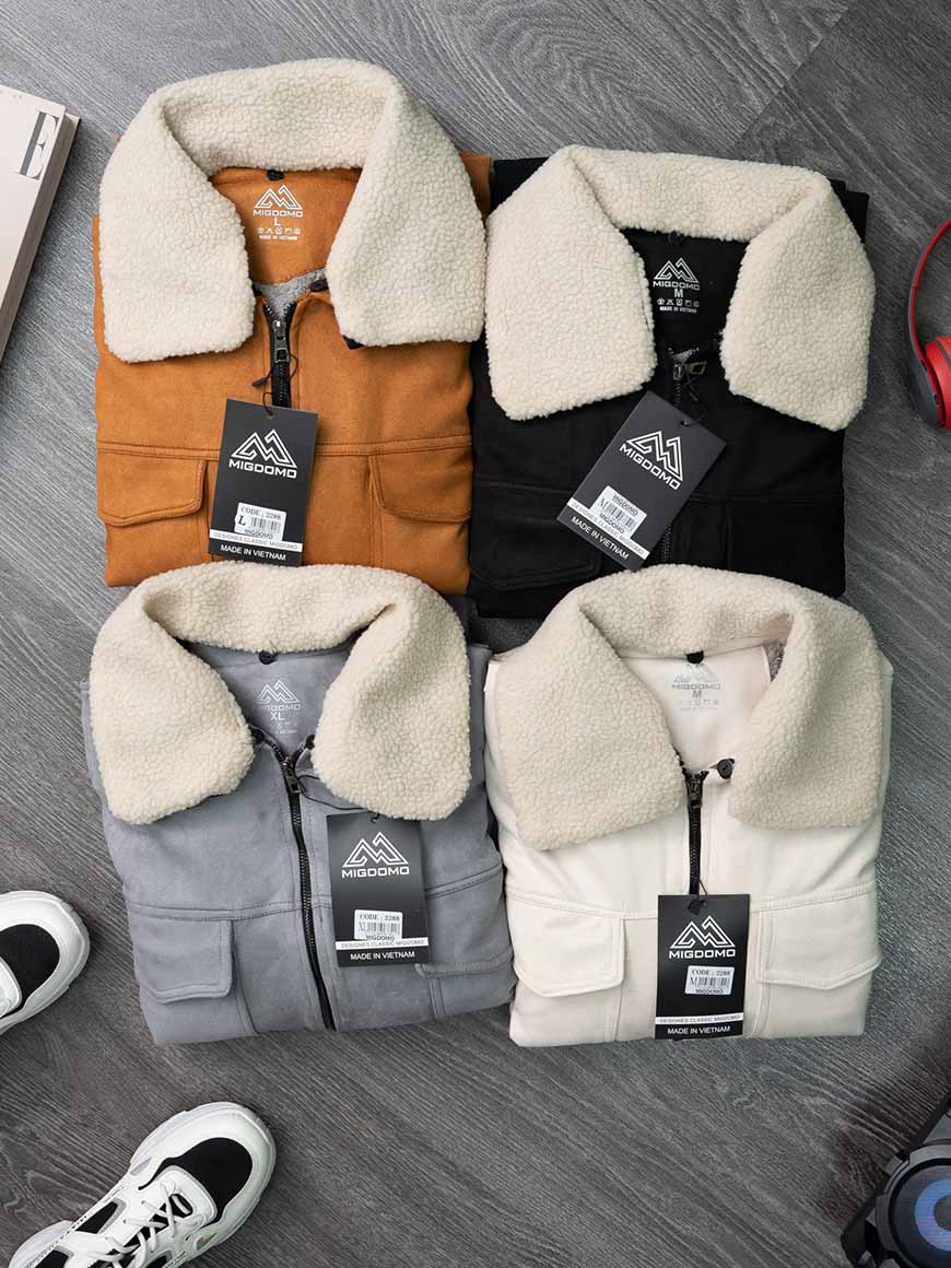 – Chất Liệu: Áo Vải da lộn không bong khi giặt-lót lông rất ấm khi thời tiết dưới 10 độ c, cổ lông tháo rời được